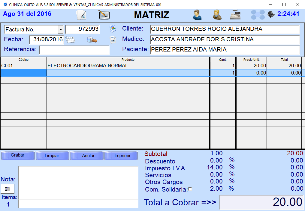 FACTURACIÓN - CLINICA