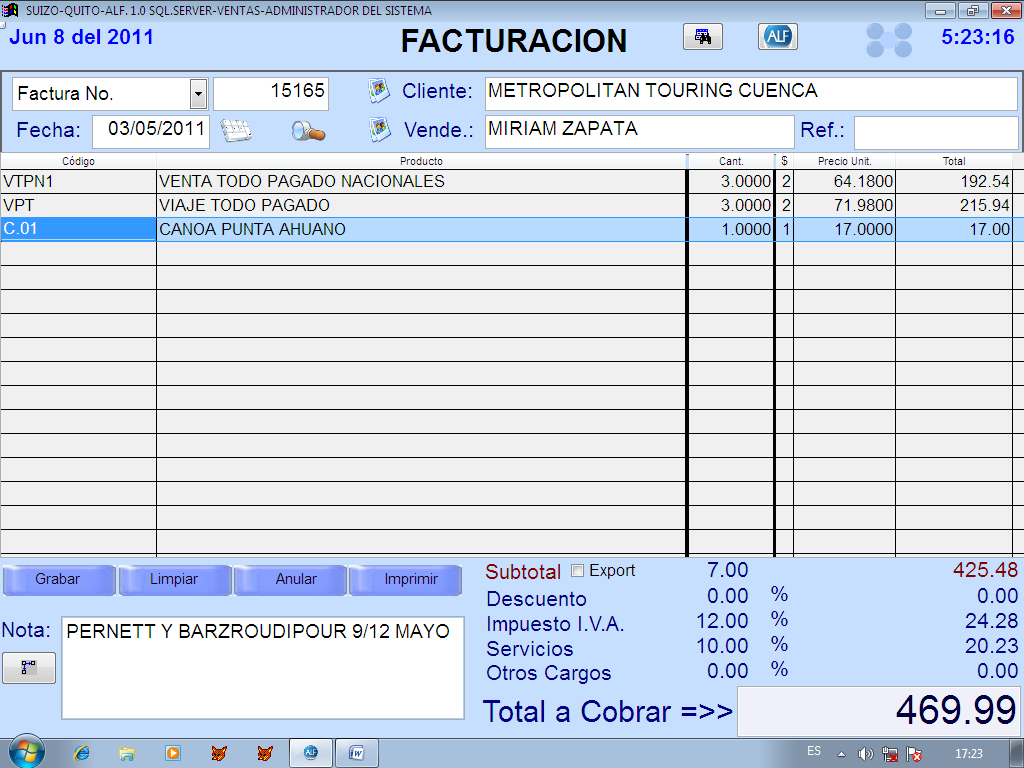 • Reportes varios (cierres de caja por factura, por productos, facturas anuladas, acumulado de productos).