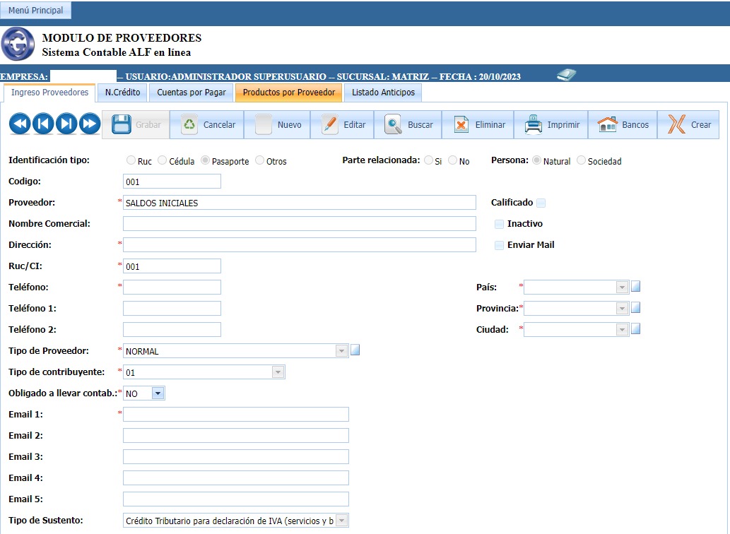 • Ingreso inmediato de campos obligatorios del SRI, para generación de archivo XML para anexo transaccional y/o REOC.
