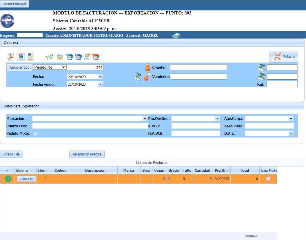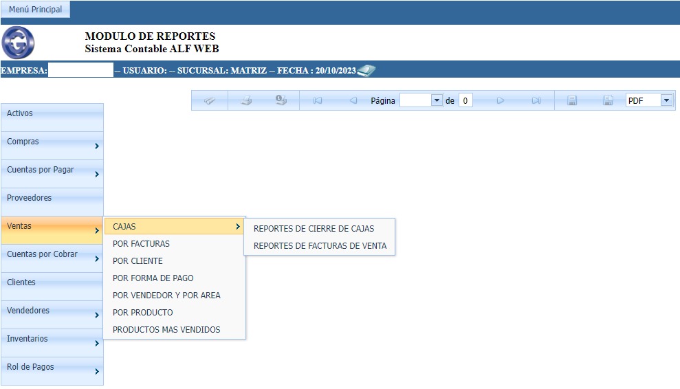 • Reportes varios (cierres de caja por factura, por productos, facturas anuladas, acumulado de productos).