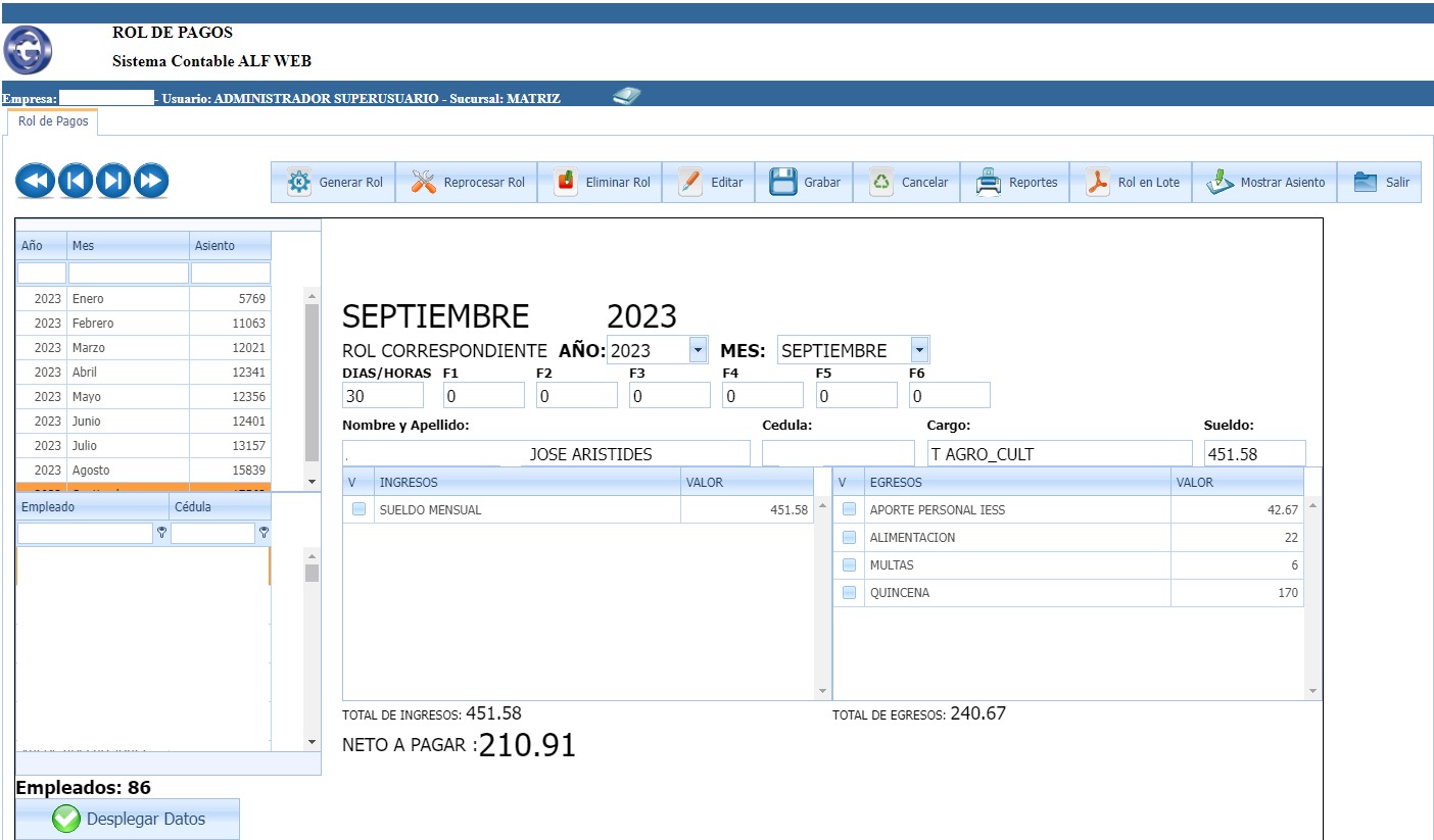 • Reporte (rol individual, rol completo, provisiones, impuesto a la renta)