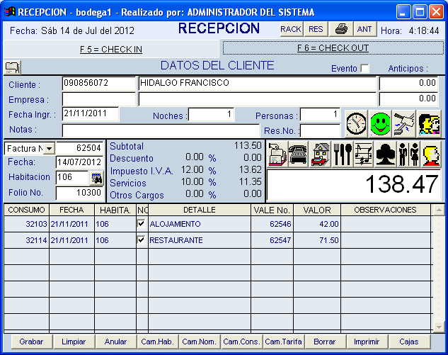 FACTURACIÓN – CHECK IN – CHECK OUT