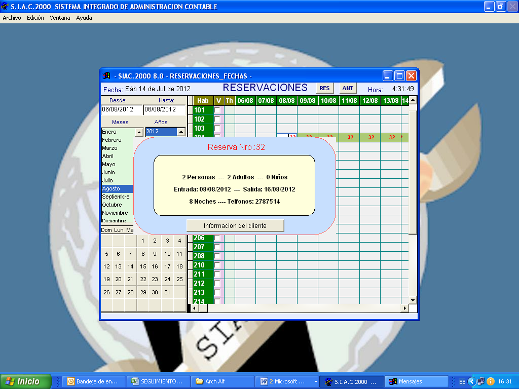 • Módulo de Reservaciones / Registro de anticipos / Calendario de Reservas